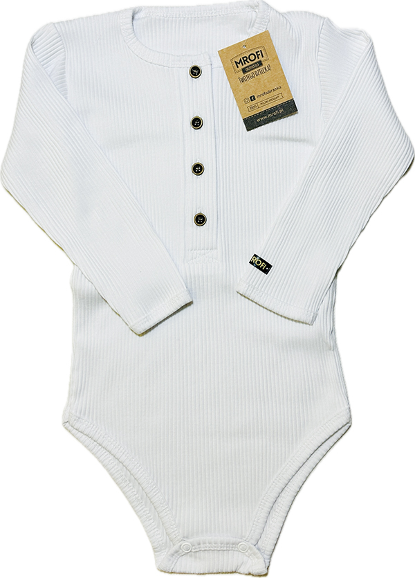 Strona główna » WIZYTOWE » Body bawełniane chłopięce z długim rękawem MROFI - PRĄŻKI - Białe Rozmiar 98