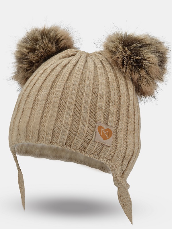 Czapka dziecięca zimowa z pomponami. Wiązana.