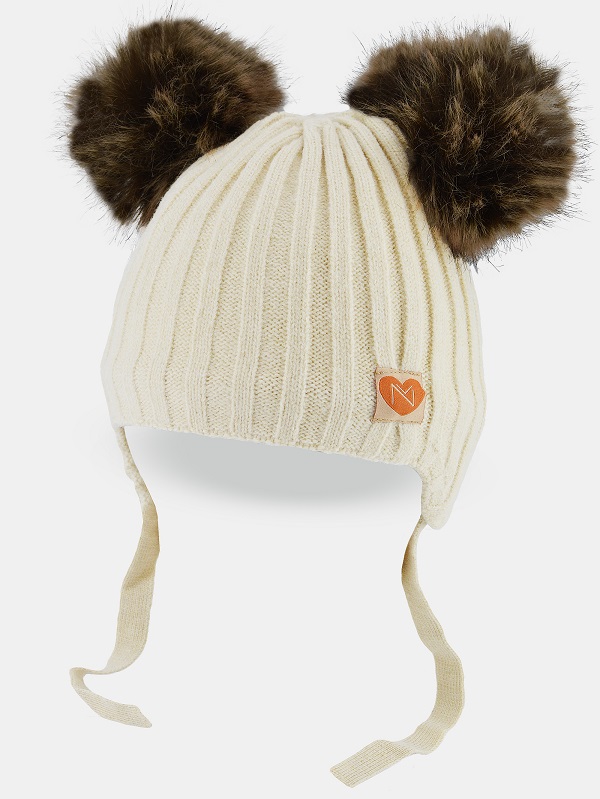 Czapka dziecięca zimowa z pomponami. Wiązana.