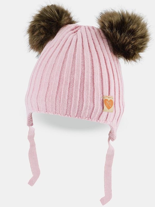 Czapka dziecięca zimowa z pomponami. Wiązana.