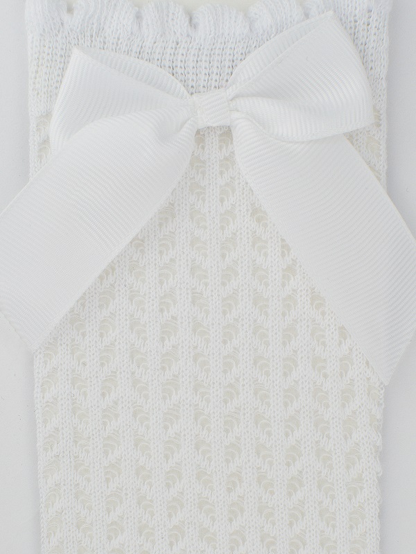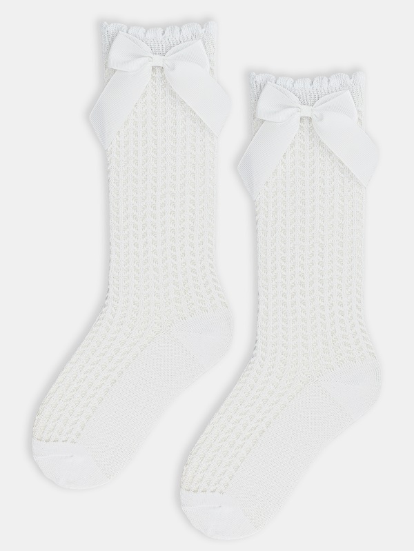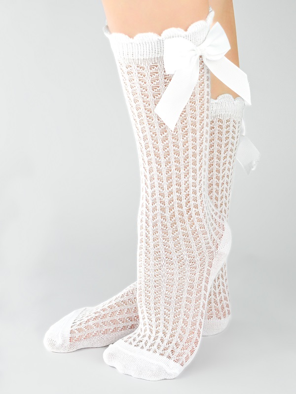 Podkolanówki dziewczęce bawełniane, ażurkowe z ozdobną kokardą.