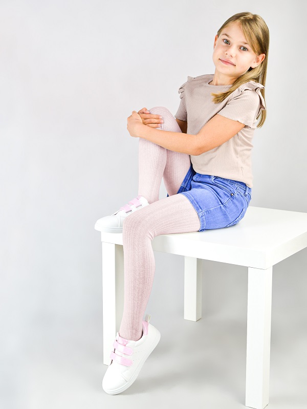Rajstopy dziecięce bawełniane NOVITI - WZORZYSTE - Brudny Róż