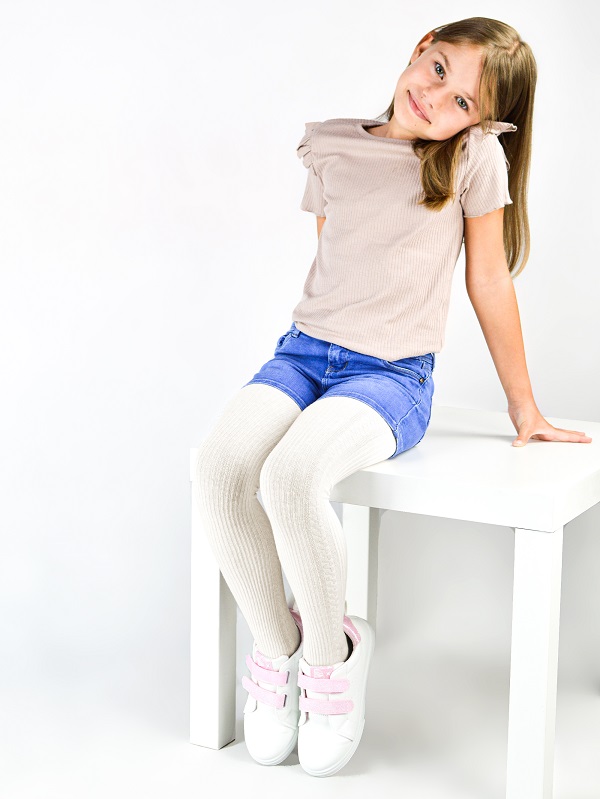 Rajstopy dziecięce bawełniane NOVITI - WZORZYSTE - Ecru